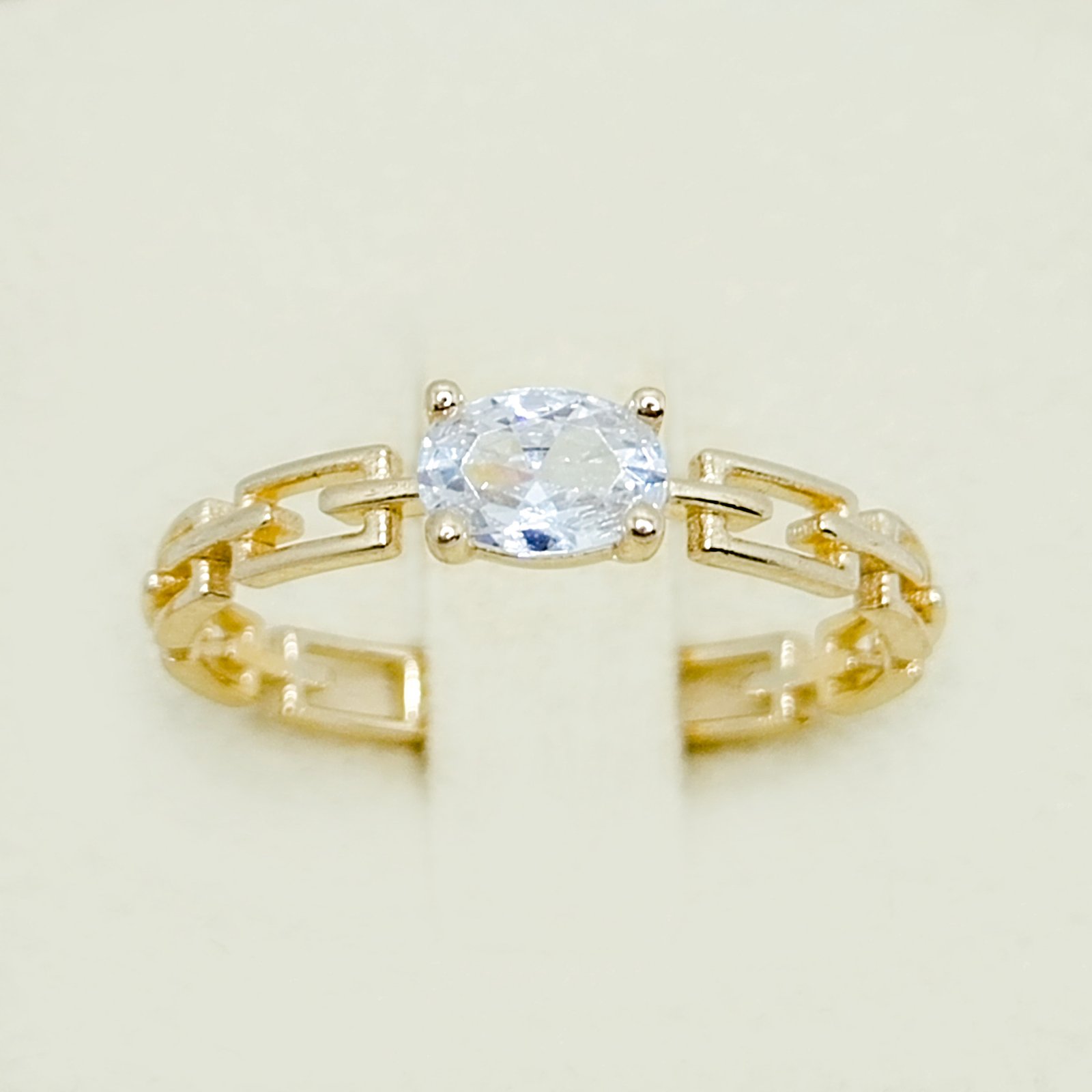 Anillo de oro de 10k en forma de cadena y piedra central ovalada.