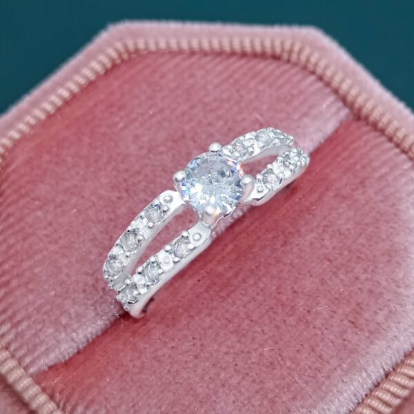 Anillo de plata s925 con piedra central y pedreria fina en los hombros.