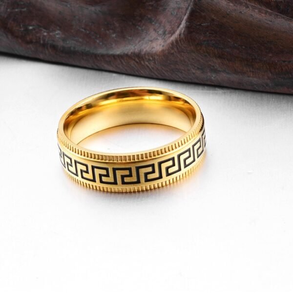 Anillo de acero inoxidable 201 con grabado de grecas.