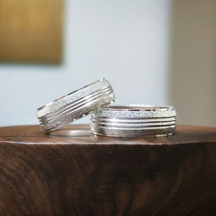 Par de anillos de plata de boda.