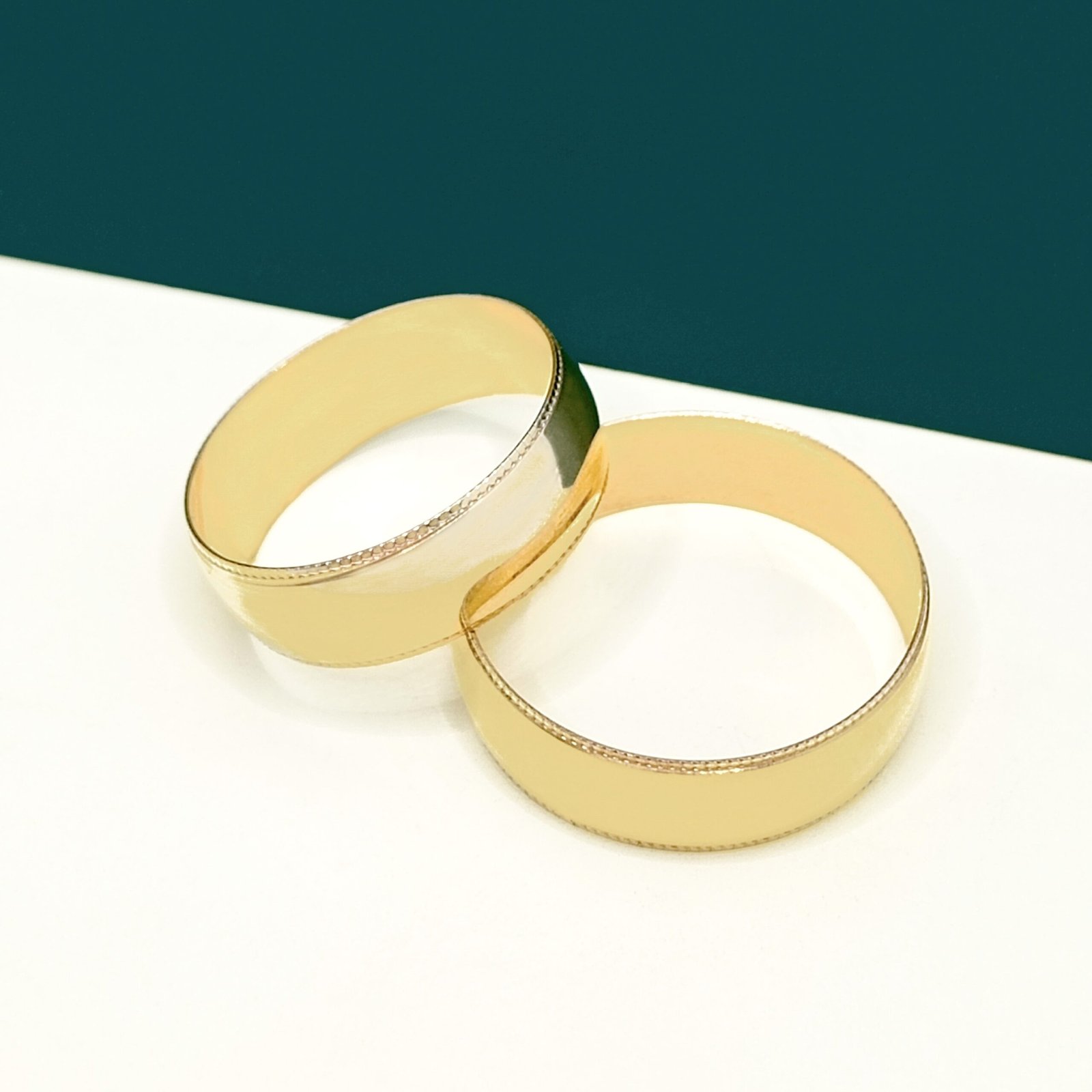 Par de anillos lisos de oro de 10k con textura en las orillas.