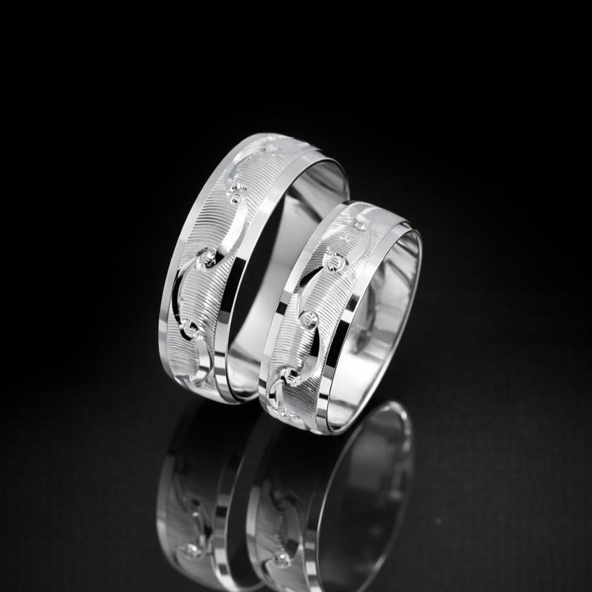 Par de anillos de plata de boda.