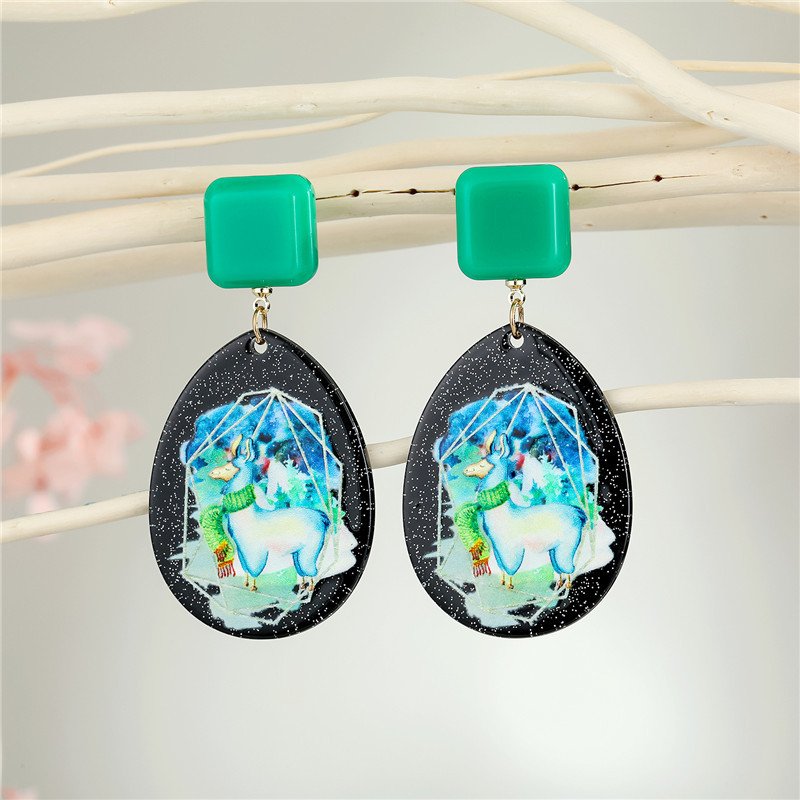 Aretes acrilicos de lama con bufanda verde.