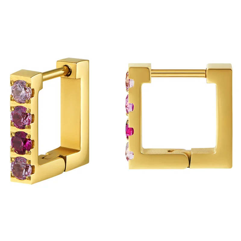 Aretes de acero inoxidable 304 chapados en oro 18k con circonias tonos rosa.