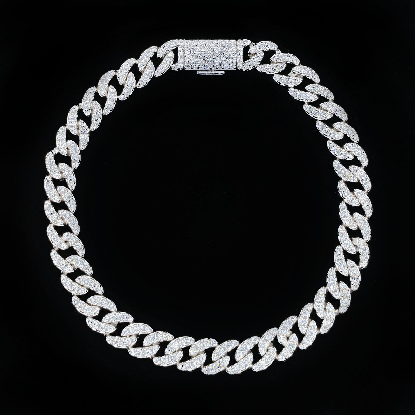 Pulsera de plata de eslabon cubana de 6.5mm de ancho con pedreria.