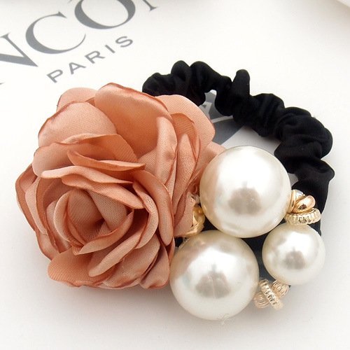 Scrunchie con perlas y rosa artificial color rosa champagne.
